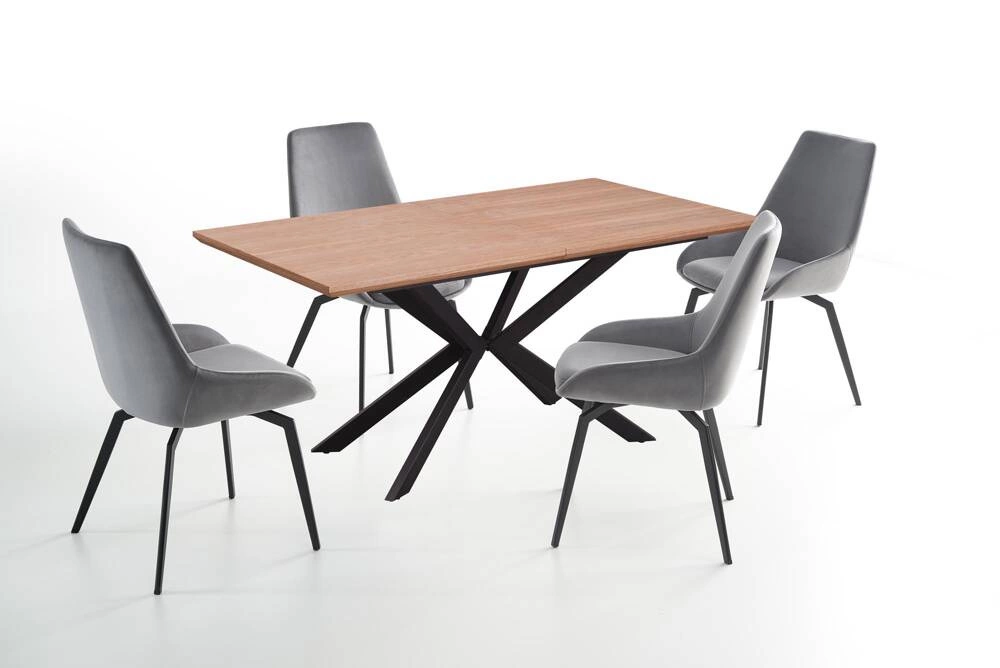- Stół rozkładany LEGARTO z blatem w kolorze naturalnego dębu i czarnymi nogami łączy nowoczesny design z funkcjonalnością. Jego elegancki wygląd i solidna konstrukcja sprawiają, że idealnie sprawdzi się w jadalni, oferując dodatkową przestrzeń na spotkania