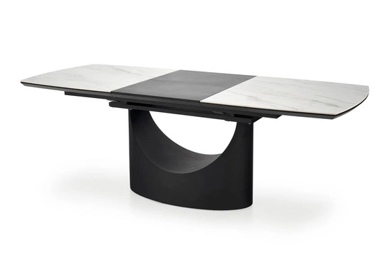 • Rozkładany stół OSMAN w kolorze biały marmur/czarny z blatem z ceramiki. Idealny do salonu czy jadalni, ten elegancki stół wprowadzi do Twojego wnętrza nutę luksusu i nowoczesności.