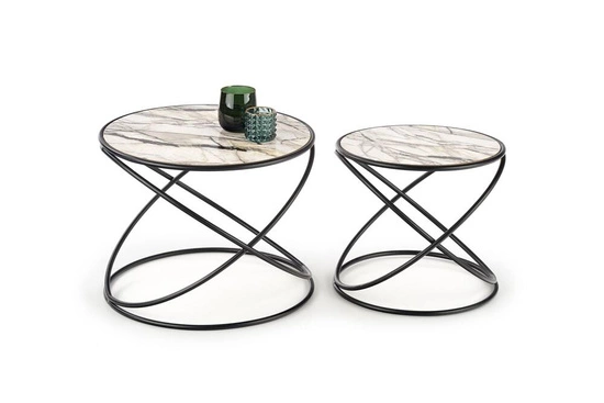 - Zestaw 2 ław SUSANNA z białym marmurowym blatem i czarnym wykończeniem to elegancki dodatek do każdego wnętrza. Idealny na napoje, przekąski oraz dekoracje, łączy styl z funkcjonalnością, tworząc przytulną atmosferę.