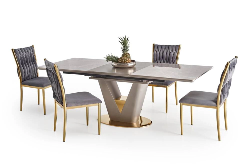 VALENTINO - Elegancki i Praktyczny Stół Rozkładany w Kolorze Jasny Popiel ze Złotem