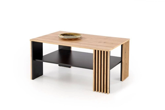 - Stylowa ława FEMINA w kolorze dąb artisan i czarnym łączy naturalne ciepło drewna z nowoczesnym designem. Idealna do salonu, wprowadza elegancję i funkcjonalność, doskonale komponując się z różnymi stylami wnętrz.