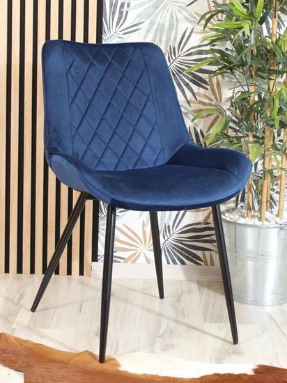 Krzesło welurowe granatowe CALIPSO na czarnych nogach