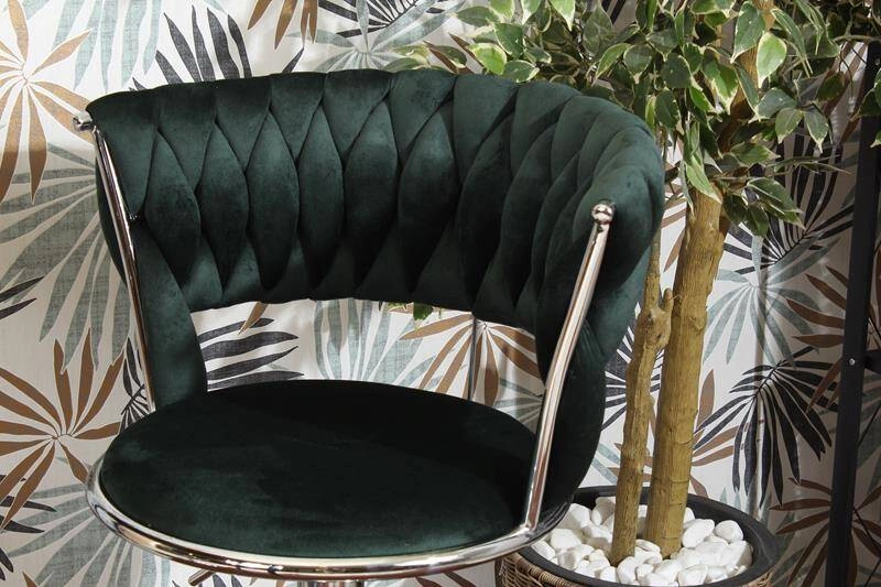Welurowy hoker glamour ROSA | zielona plecionka, srebrny stelaż