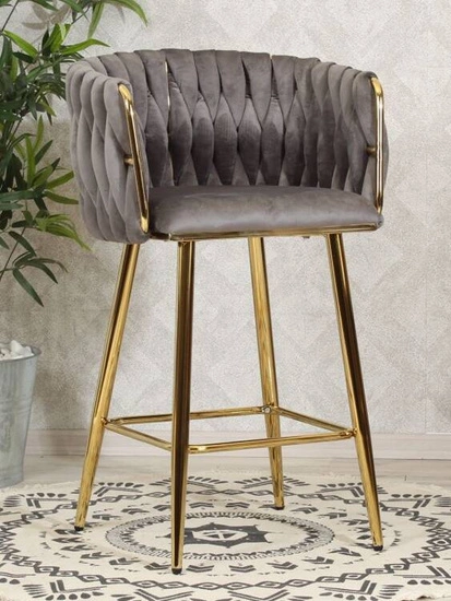 - Krzesło barowe ROSA 3 to harmonijne połączenie elegancji i komfortu. Złoty stelaż i nogi współgrają z welurowym siedziskiem w subtelnym odcieniu szarości. Wyplecione oparcie dodaje mu wyjątkowego stylu, czyniąc je idealnym wyborem do nowoczesnych wnętrz.