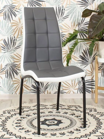 Krzesło z ekoskóry na czarnych nogach CORSO C szaro-białe