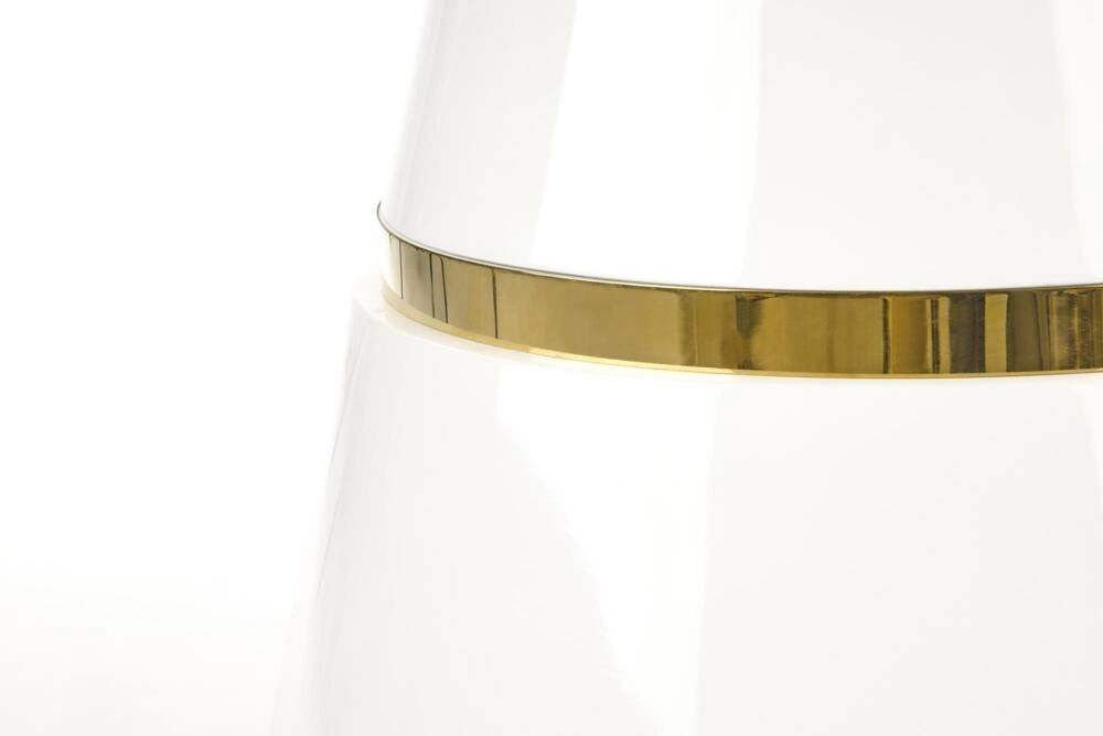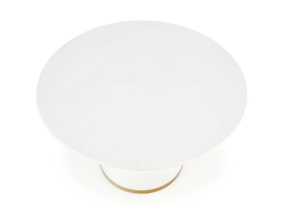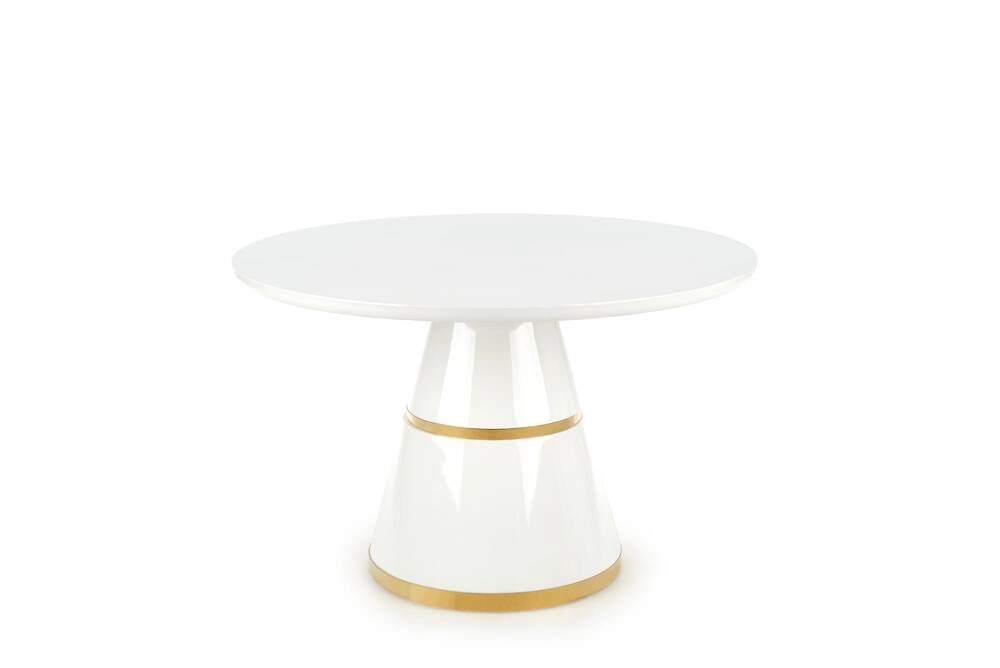 Noga stołu, która łączy w sobie biały kolor z delikatnymi złotymi akcentami, wykonana została z chromowanej stali, co gwarantuje stabilność i trwałość całej konstrukcji. Złote detale dodają meblowi luksusowego charakteru, wprowadzając do wnętrza nutę glamour. Stożkowy kształt nogi zapewnia nie tylko stabilność, ale także nowoczesny wygląd, który z pewnością przyciągnie uwagę.