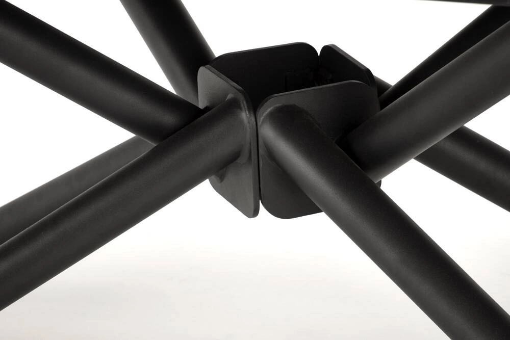 Centralnym punktem zestawu jest stół VITORINO – rozkładany model z blatem wykonanym z wytrzymałego spieku imitującego czarny marmur. Jego subtelny połysk i naturalne wzory przypominające marmur nadają wnętrzu luksusowego wyglądu. Spiek to materiał odporny na zarysowania, wysoką temperaturę i łatwy w pielęgnacji, co sprawia, że stół jest nie tylko efektowny, ale też niezwykle praktyczny.