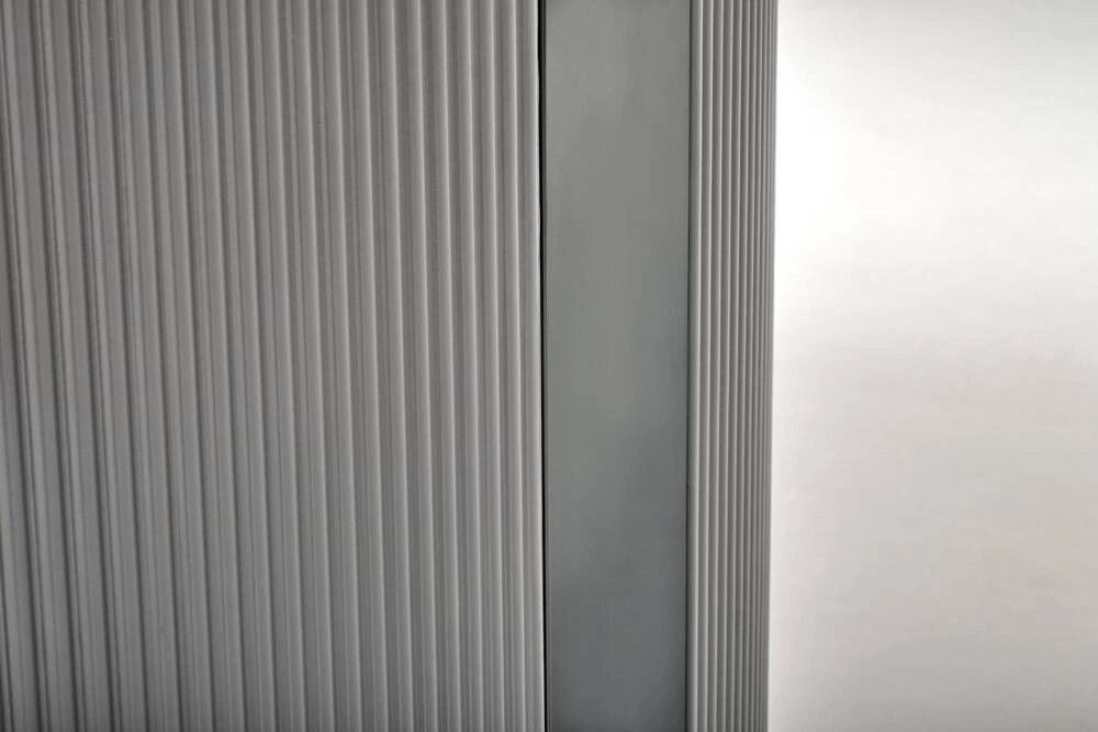 Siedzisko i oparcie krzesła zostały wykonane z wysokiej jakości tkaniny oraz eko skóry, które w połączeniu tworzą spójny, estetyczny wygląd. Kolory popielaty oraz ciemny popiel doskonale komponują się z nowoczesnymi aranżacjami wnętrz. Komfort użytkowania zapewniają miękkie, pikowane poduszki, które gwarantują wygodę nawet podczas długiego siedzenia.