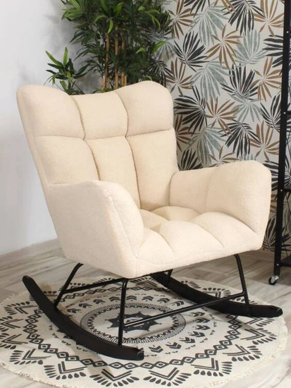 Stylowy i Wygodny Fotel bujany TEDDY beżowy boucle