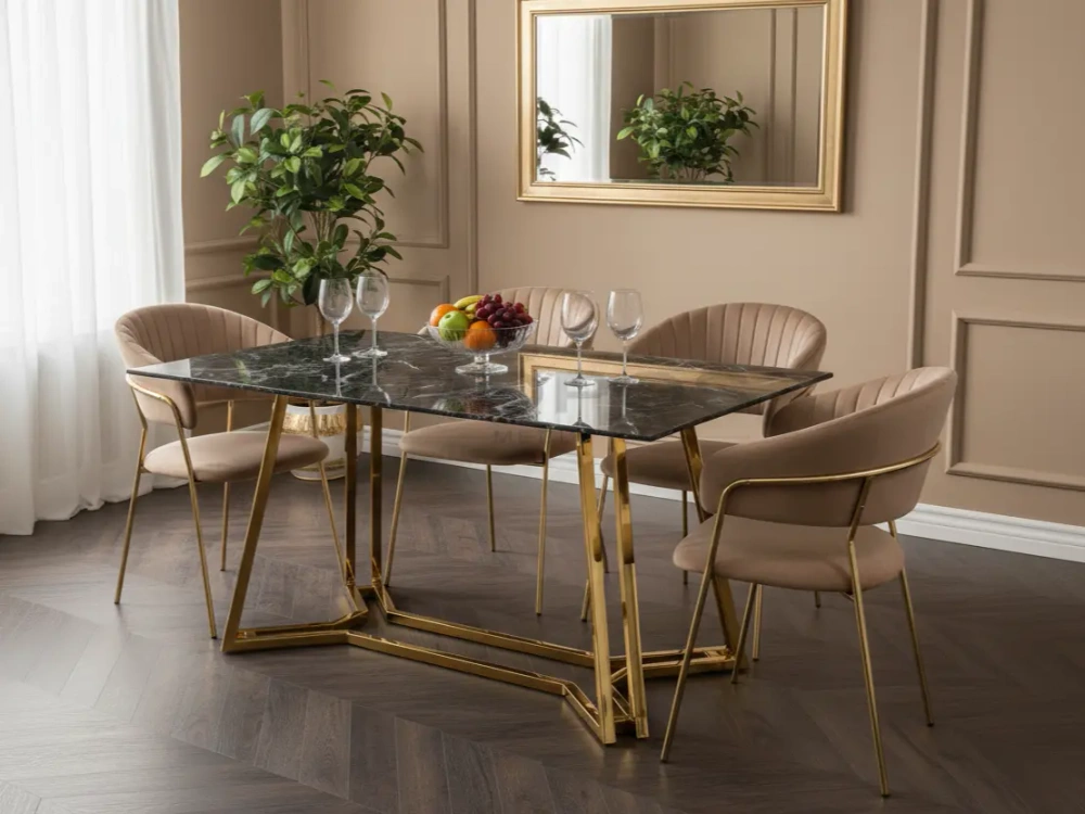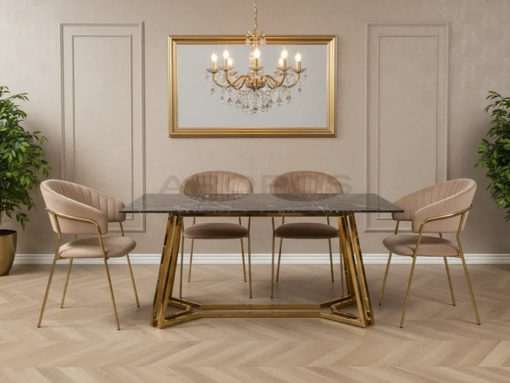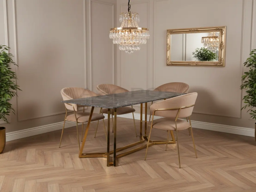 Szukasz krzeseł, które wprowadzą do Twojej jadalni elegancję? Model MARGO to idealne połączenie wygody i pięknego designu w stylu glamour. Połączenie kolorystyczne złota i beżu dodaje mu klasy i szyku. Krzesło MARGO ciemny beż i złoto – elegancja na najwyższym poziomie Smukłe nogi, delikatna, ale solidna konstrukcja i miękkie siedzisko. Fotel MARGO to połączenie designu na najwyższym poziomie z niezwykłym komfortem użytkowania. W modelu krzesła MARGO zachwyci Cię: jego smukła linia, która wprowadzi do jadalni lekkość i nie przytłoczy jej, połyskujący złoty stelaż i nóżki, które wyglądają elegancko i jakościowo, siedzisko i oparcie w ciepłym, stonowanym odcieniu beżu, który pasuje do wnętrz w różnej kolorystyce. Krzesło MARGO to idealne siedzisko do jadalni oraz salonów w stylu klasycznym i glamour. Stonowana kolorystyka sprawdzi się także w nowoczesnych aranżacjach, wprowadzając do nich odrobinę blasku.