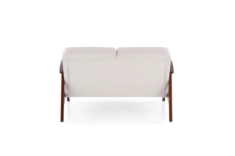 • Dwuosobowa sofa MILANO 2S w jasnobeżowej tkaninie CASTEL (Castel #04) z nogami z litego drewna bukowego w kolorze ciemnego orzecha. Stylowa i kompaktowa, idealna do mniejszych przestrzeni. Wymiary: 120x77x77x44 cm.