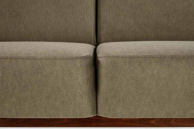 Sofa z drewnianymi podłokietnikami MILANO 3S w kolorze oliwkowym Castel 39