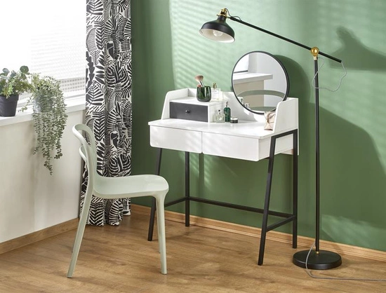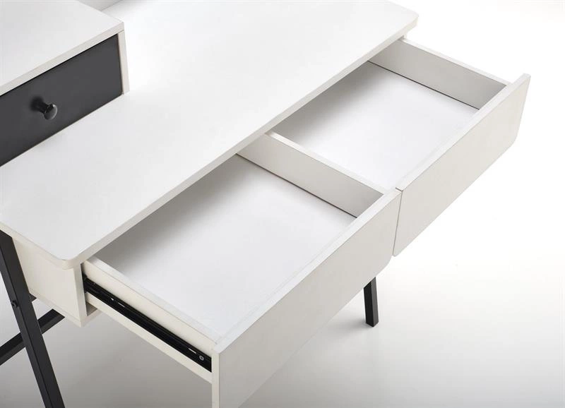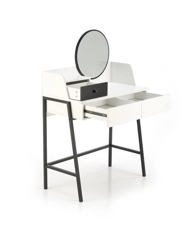 - AGNES Konsolka Biały/Czarny to elegancki mebel, który łączy lustro, okleinowaną melaminą płytę meblową i stal malowaną proszkowo. Charakteryzuje się subtelną kolorystyką (biały-czarny) i minimalistycznym designem, idealna do nowoczesnych wnętrz.