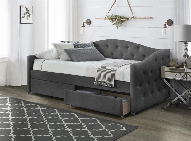 ALOHA łóżko z szufladami popielaty velvet to stylowe i funkcjonalne rozwiązanie do nowoczesnych sypialni. Wykonane z miękkiej w dotyku tkaniny velvet, prezentuje się niezwykle elegancko, a jego popielaty kolor dodaje wnętrzu subtelnej klasy. To łóżko łączy komfort z praktycznością, oferując dodatkowe szuflady, które są idealne do przechowywania pościeli, ubrań lub innych domowych akcesoriów.