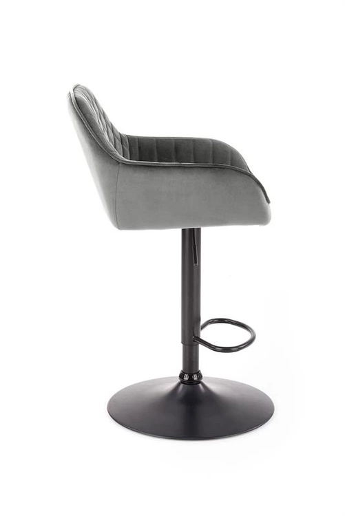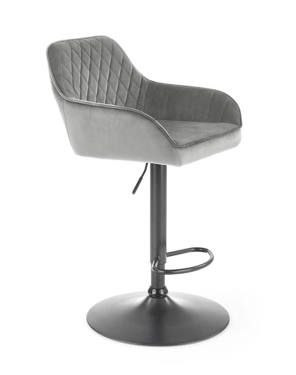 - H103 Hoker Popielaty to stylowy hoker z regulowaną wysokością, wykonany z tkaniny velvet w kolorze popielatym BLUVEL 14 i stali malowanej proszkowo. Idealny do nowoczesnych wnętrz, łączący komfort i elegancję.