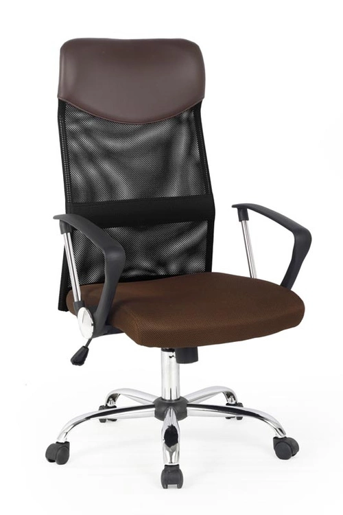 - Fotel VIRE w kolorze brązowym z mechanizmem TILT to elegancka i funkcjonalna opcja dla osób poszukujących komfortowego fotela do biura. Dzięki regulowanemu oparciu oraz tkaninie membranowej, zapewnia wygodę przez cały dzień pracy.