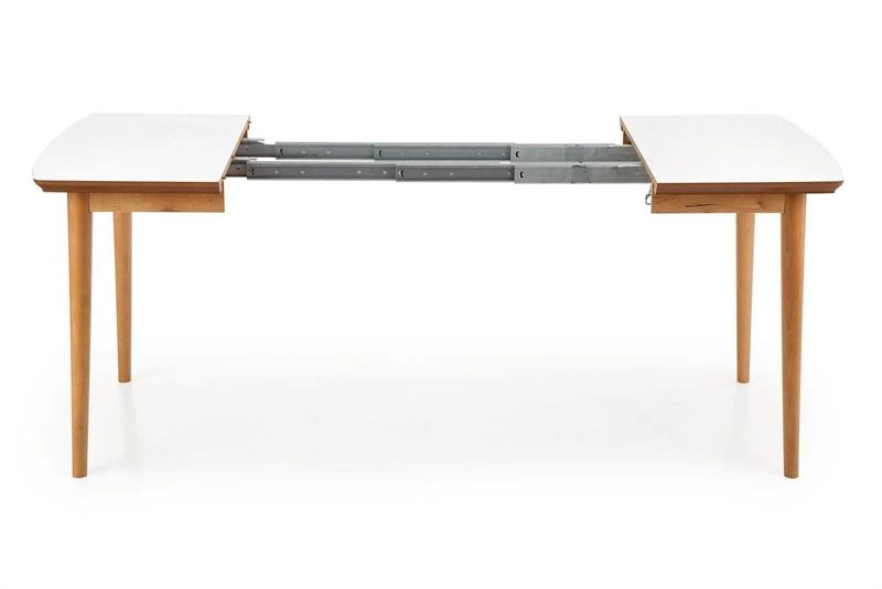 - Stół rozkładany BARRET w kolorze białym matowym z nogami w odcieniu dębu lefkas. Blat wykonany z MDF okleinowanego, nogi z drewna bukowego. Wymiary: 90-190/80/75 cm. Idealny wybór do nowoczesnych wnętrz, łączący funkcjonalność z elegancją.