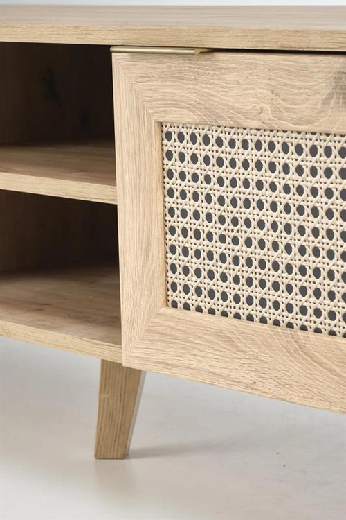 Stolik RTV BORNEO RTV-1 w kolorze dąb artisan/czarny to idealny wybór dla osób poszukujących nowoczesnego, praktycznego mebla. Wykonany z płyty meblowej laminowanej, MDF laminowanego oraz płyty HDF laminowanej, zapewnia solidność i trwałość. Naturalny odcień dębu artisan doskonale komponuje się z czarnymi akcentami, tworząc elegancki wygląd. O wymiarach 150/40/45 cm, stolik oferuje wystarczającą przestronność do przechowywania sprzętu RTV, płyt czy innych akcesoriów. Dodatkowo, polipropylenowe detale wzmacniają nowoczesny charakter mebla.