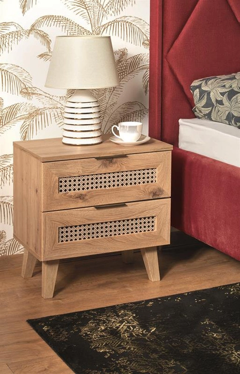 Szafka nocna BORNEO SN-1 to połączenie nowoczesnego designu i funkcjonalności. Wykonana z płyty meblowej laminowanej, MDF laminowanego oraz płyty HDF laminowanej, zapewnia trwałość i estetyczny wygląd. Naturalny kolor dębu artisan w zestawieniu z czarnymi akcentami doskonale komponuje się w nowoczesnych i klasycznych wnętrzach. O wymiarach 50/34/52 cm, szafka posiada szufladę oraz otwartą półkę, idealną do przechowywania książek, lampki nocnej czy innych drobiazgów. Polipropylenowe detale dodają jej nowoczesnego charakteru.