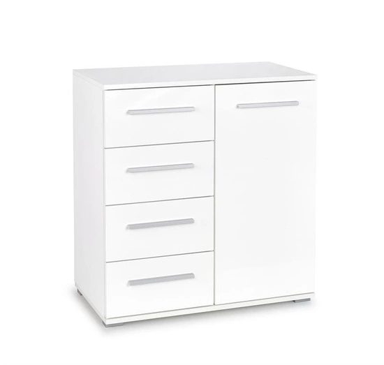 Komoda LIMA KM-2 w kolorze białym to doskonała propozycja dla osób szukających prostoty, elegancji i funkcjonalności. Jej nowoczesny design, oparty na białym wykończeniu w wysokim połysku, idealnie komponuje się z różnymi stylami wnętrz, wprowadzając do pomieszczenia świeżość i lekkość. Komoda została wykonana z wysokiej jakości płyty meblowej laminowanej, a obrzeża z materiału ABS zapewniają dodatkową ochronę przed uszkodzeniami mechanicznymi.
