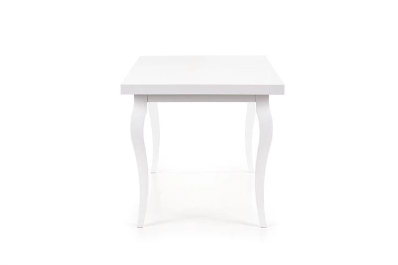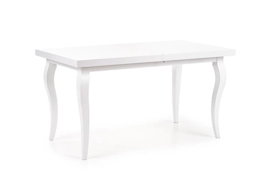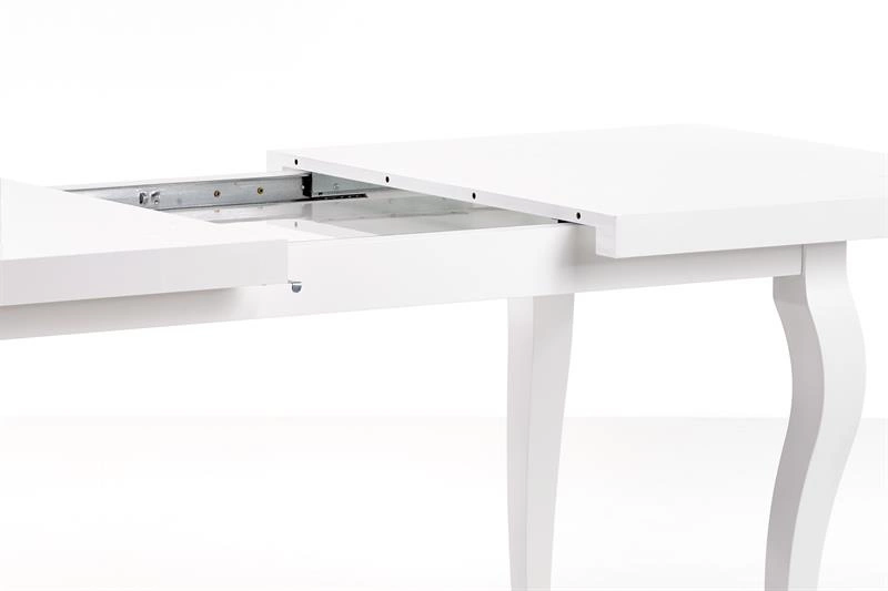 • Stół MOZART to elegancki, biały stół rozkładany z laminowanym blatem i bukowymi nogami. Dzięki funkcji rozkładania zwiększa długość z 140 cm do 180 cm, idealny do nowoczesnych i klasycznych wnętrz.
