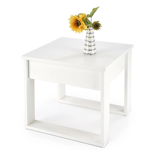 - Ława NEA KWADRAT to nowoczesny mebel o prostym, eleganckim designie. Wykonana z płyty meblowej okleinowanej w kolorze białym, doskonale komponuje się z różnymi stylami wnętrz, wprowadzając do pomieszczenia funkcjonalność i styl.