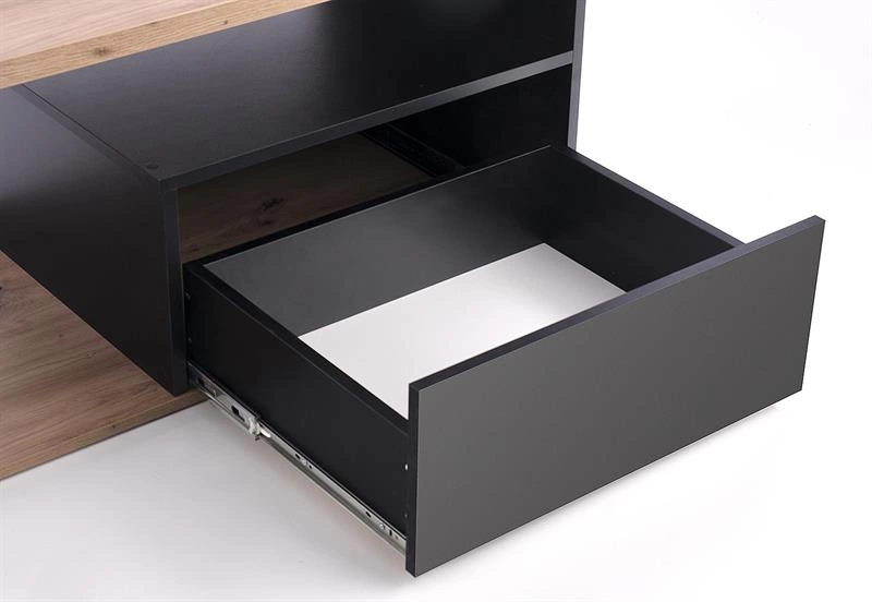 - Ława PANTERA w kolorze dąb wotan/czarnym to elegancki mebel, który doskonale pasuje do nowoczesnych wnętrz. Charakteryzuje się prostą, ale efektowną formą, która wprowadza stylowy akcent do salonu czy pokoju dziennego.