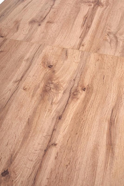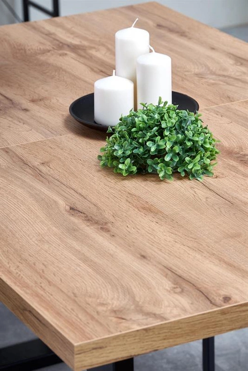 • Stół VENOM to praktyczny mebel z laminowanym blatem w kolorze dąb wotan i czarnymi stalowymi nogami. Jego długość można zwiększyć z 135 cm do 185 cm, dzięki czemu sprawdzi się zarówno na co dzień, jak i podczas większych spotkań.