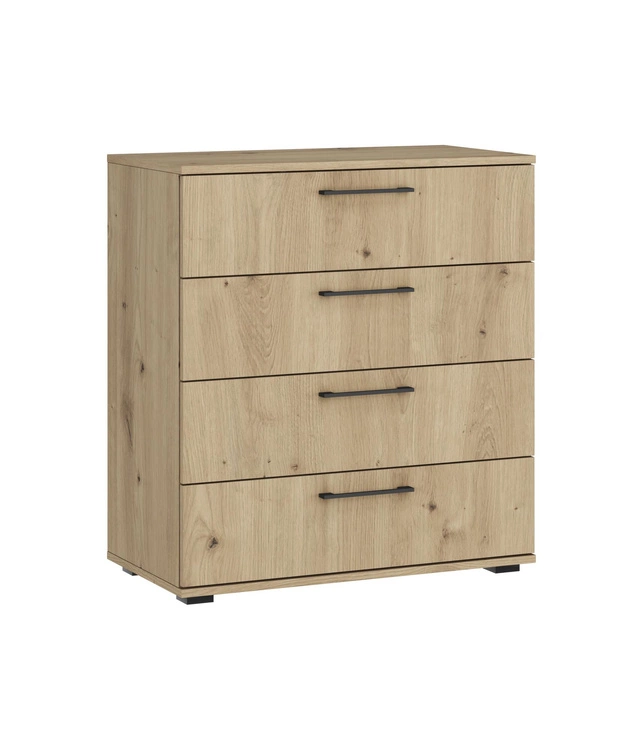 Komoda KM-1 to praktyczny mebel zaprojektowany z myślą o funkcjonalności i estetyce. Niewielkie wymiary sprawiają, że świetnie sprawdzi się w mniejszych pomieszczeniach, nie rezygnując z pojemności i wygody użytkowania. Korpus i fronty w kolorze dąb artisan nadają wnętrzu naturalnego uroku i elegancji, idealnie komponując się z aranżacjami w stylu nowoczesnym, skandynawskim czy klasycznym. Wykonana z trwałej płyty meblowej laminowanej, odpornej na codzienne użytkowanie, stanowi solidny i ponadczasowy element wyposażenia. Doskonale łączy się z innymi modułami systemu FORMO, umożliwiając tworzenie spójnych i funkcjonalnych zestawów.