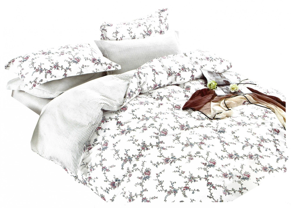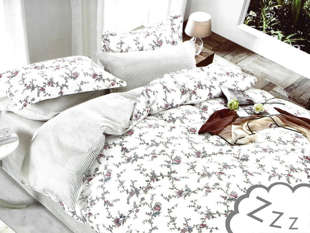 Pościel Satyna Bawełniana w Kwiaty Biała A856 200x220PP 4 części