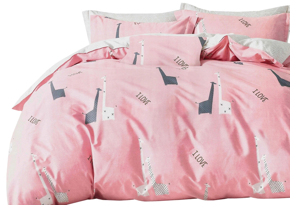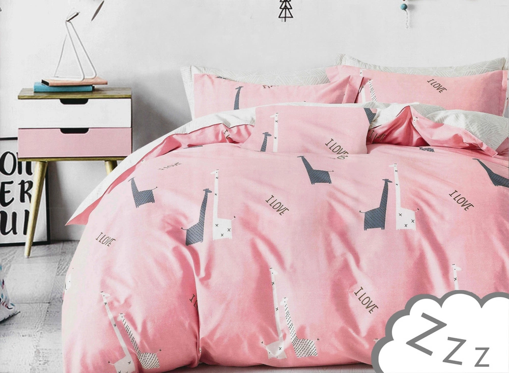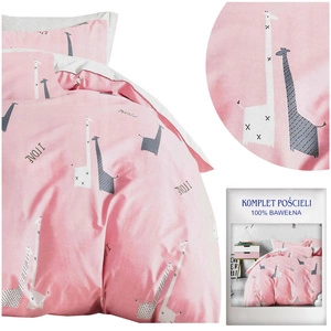 Pościel Satyna Bawełniana w Żyrafy Różowa A1100 160x200NP 3 części