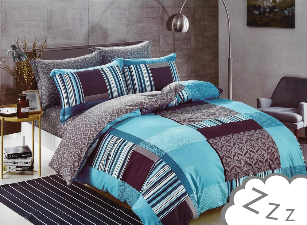 Pościel Satyna Bawełniana Niebieska Dwustronna A1030 160x200NP 3 części