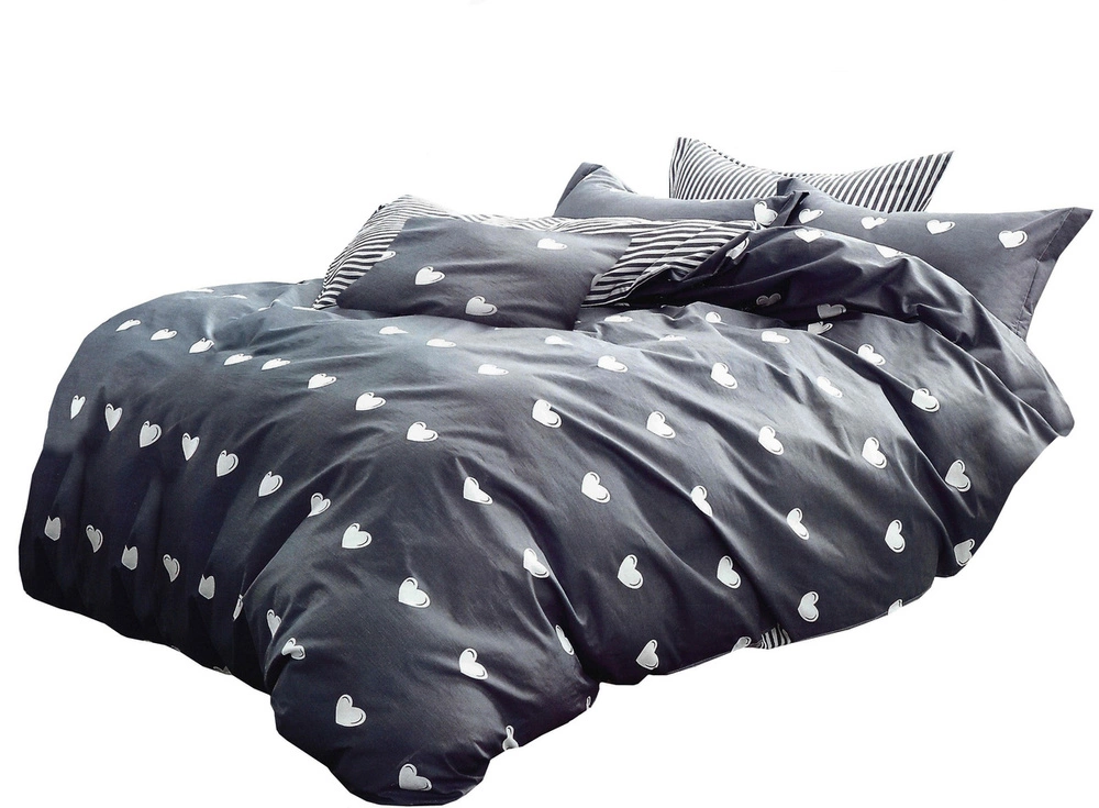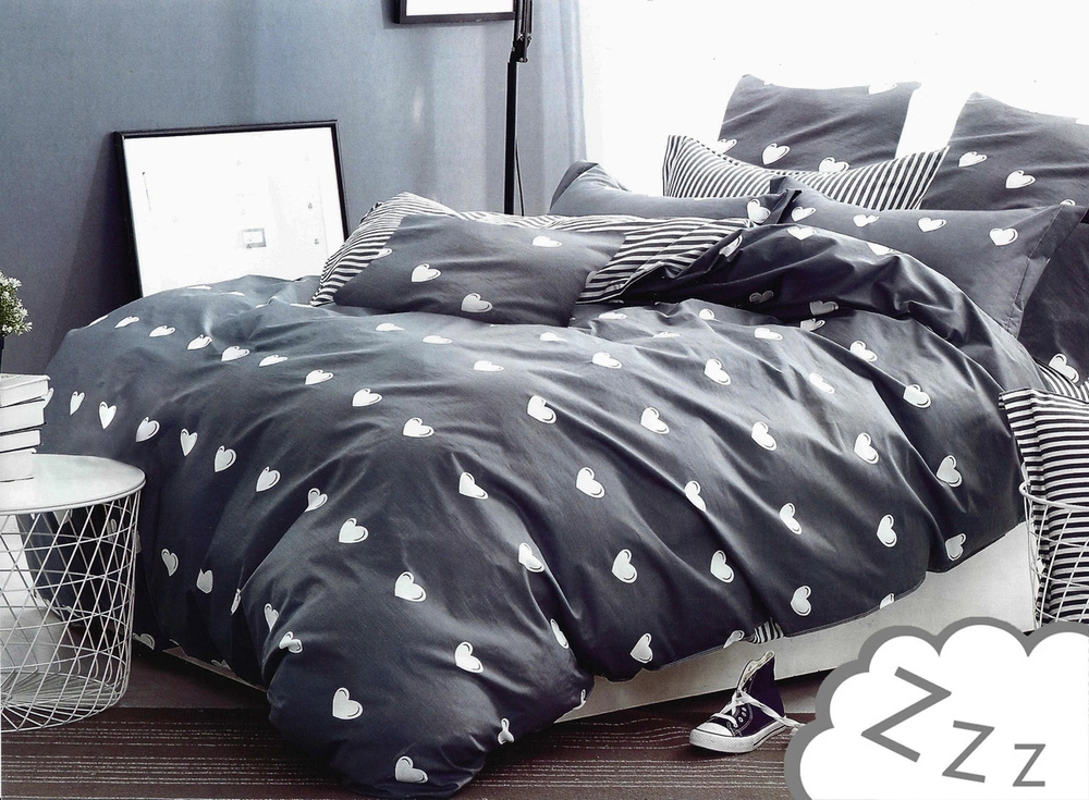 Pościel Satyna Bawełniana w Serduszka Szara A1000 200x220NP 3 części