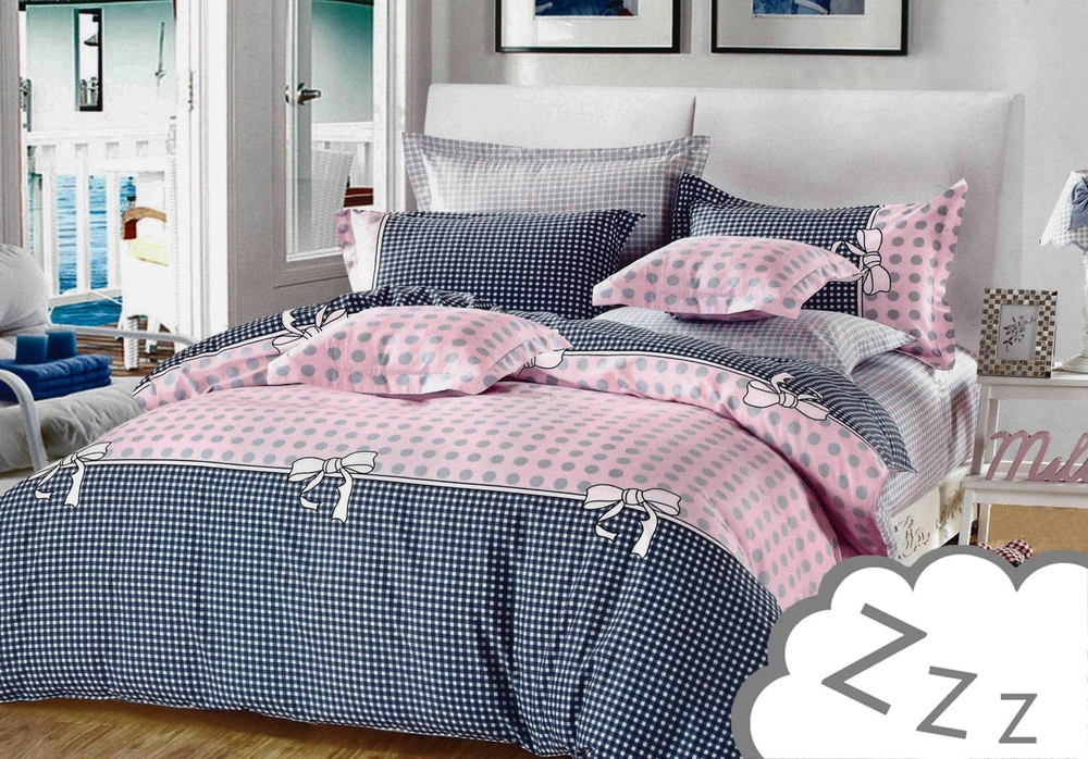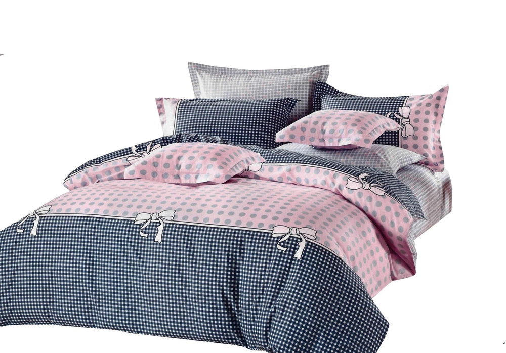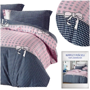 Pościel Satyna Bawełniana Kokardki Różowa A1007 200x220NP 3 części