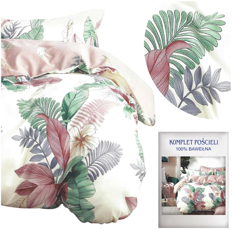 - Pościel Satyna Bawełniana nr A1356 w odcieniach kremowego z motywem roślinnym. Zestaw składa się z poszwy 160x200 cm i dwóch poszewek 70x80 cm, wykonanych z satyny bawełnianej, co gwarantuje miękkość i elegancję w sypialni.