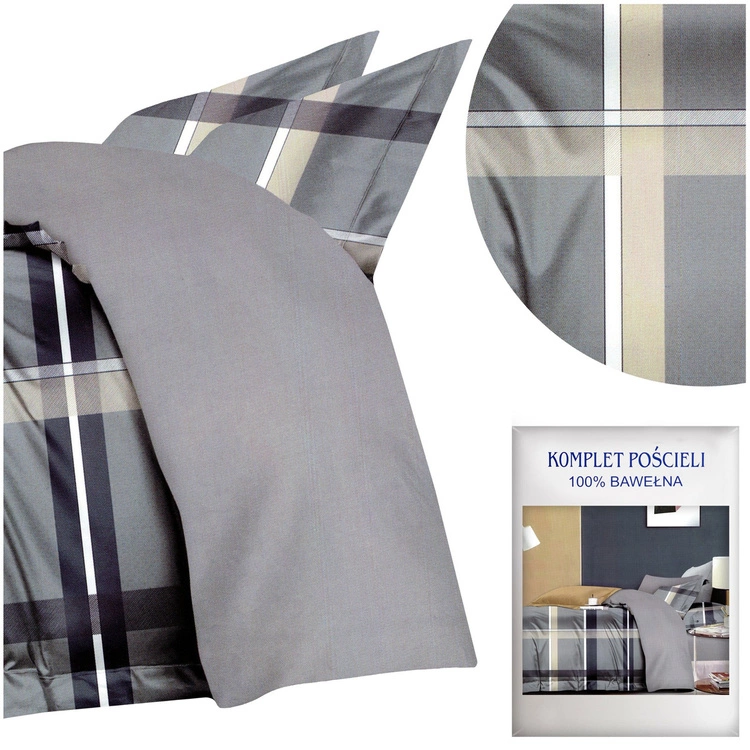 Pościel w kratkę 200 x 220 3cz Satyna Bawełniana nr A1495