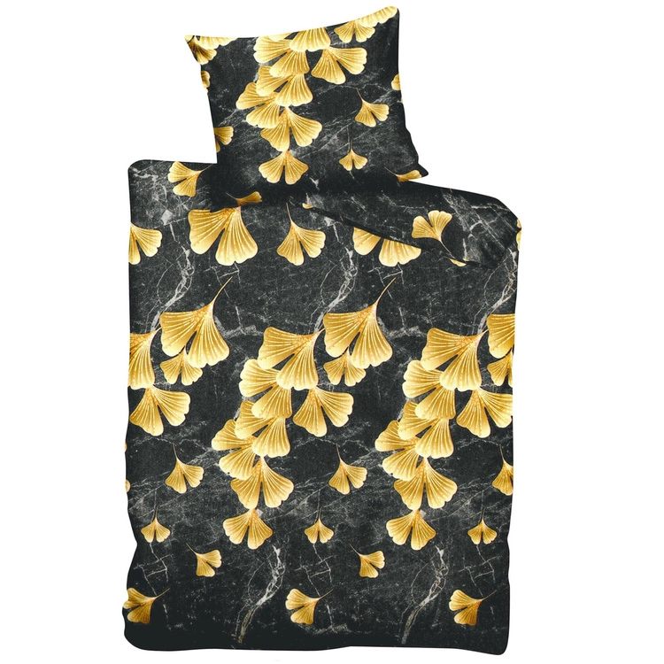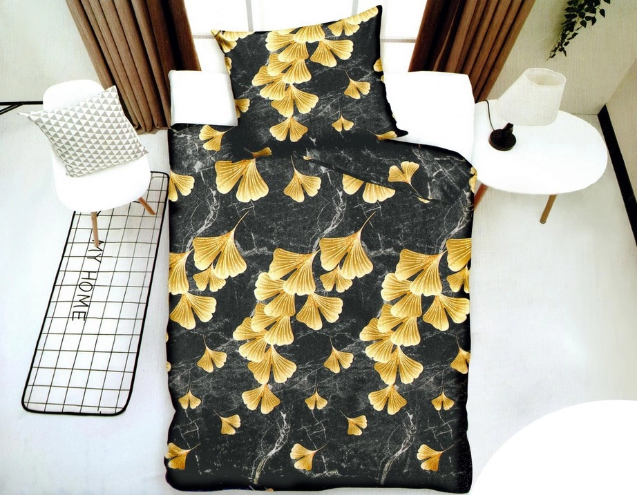 Kolorystyka tej pościeli obejmuje odcienie szarości i srebra, czerni, a także żółtego i złotego, co sprawia, że pościel idealnie wpisuje się w elegancki, klasyczny lub nowoczesny styl sypialni. Dzięki tym uniwersalnym barwom można ją łatwo dopasować do różnorodnych dekoracji i elementów wystroju wnętrza.