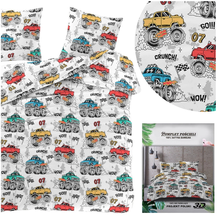 Pościel w samochodziki 160 x 200 3cz Satynowa Maria 2510