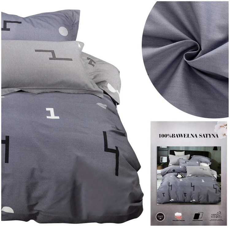 - Elegancka pościel w rozmiarze 200x220 cm wykonana z satyny bawełnianej w odcieniach szarości i srebrnego, wyposażona w zamek błyskawiczny, zapewniająca komfort i luksusowy wygląd każdej sypialni.