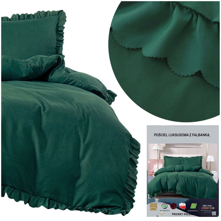 - Elegancka pościel 3-częściowa z falbaną Jowita marki Łóżkoholicy to romantyczny akcent w sypialni. Wykonana z miękkiej tkaniny, zapinana na zamek błyskawiczny – idealna na prezent i do codziennego użytku.