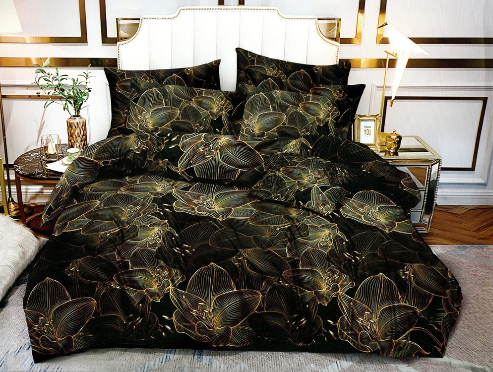 Elegancka pościel Dalwin 895 w rozmiarze 200x220 cm wykonana z satyny bawełnianej w odcieniach czerni. Zamek błyskawiczny ułatwia jej zakładanie, a gramatura 75 g/m² zapewnia komfort snu.