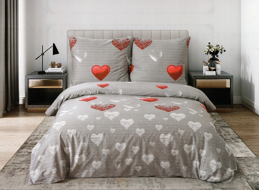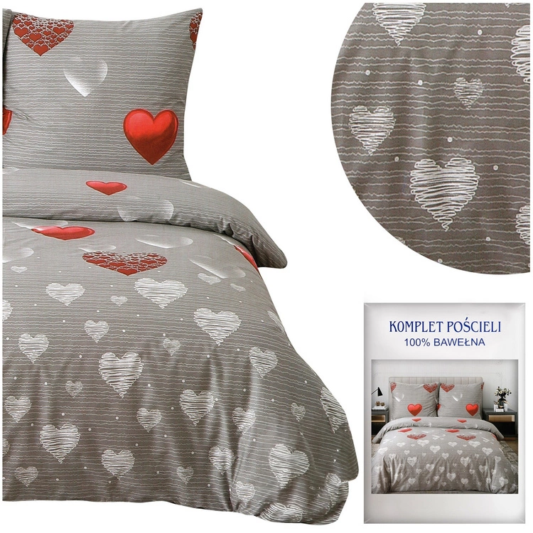 Pościel w serca 160 x 200 3cz Satyna Bawełniana nr A1601