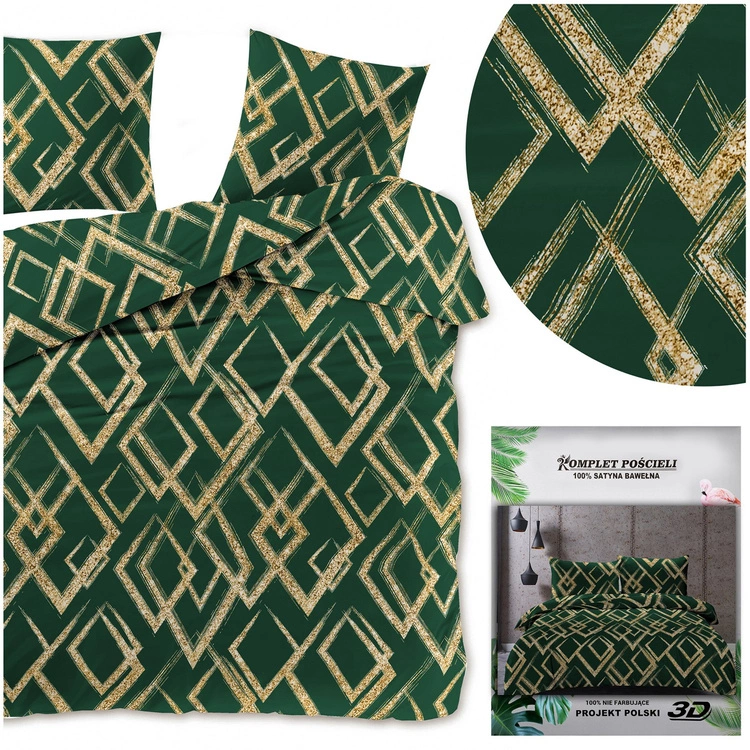 • Pościel Satynowa Maria 200x220 cm w odcieniach zieleni, wykonana z satyny bawełnianej. Zestaw 3-elementowy z zamkiem błyskawicznym.