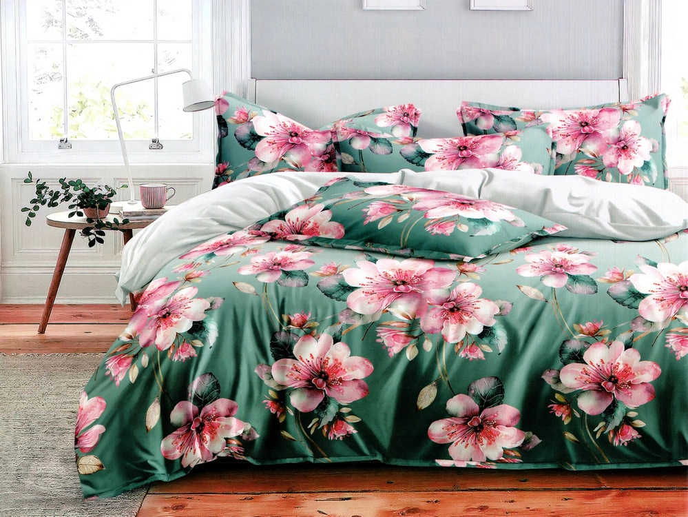 Pościel w kwiaty 200 x 220 3cz Satynowa Dalwin 971