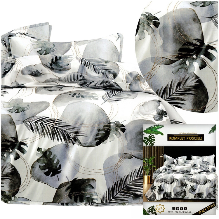 - Pościel 200 x 220 4cz Satynowa Dalwin 994 z satyny bawełnianej (75 g/m²), z zamkiem błyskawicznym. Zestaw zawiera poszwę (200x220 cm), 2 poszewki na poduszki (70x80 cm) oraz prześcieradło (220x230 cm) bez gumki.