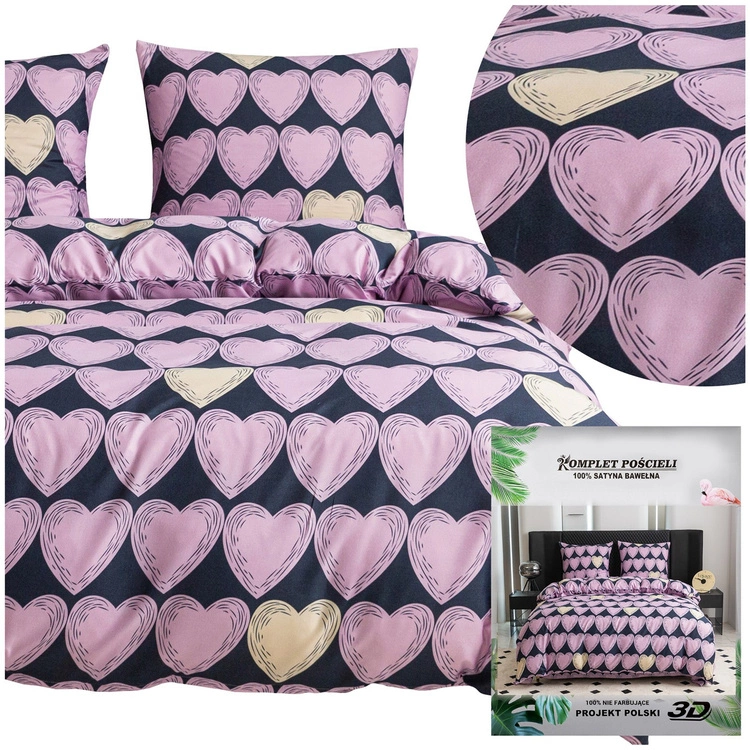 Pościel w serduszka 200 x 220 3cz Satynowa Maria 2784