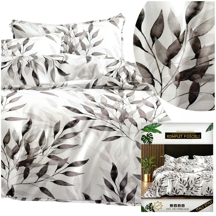 Pościel w listki 160 x 200 3cz Satynowa Dalwin 1008
