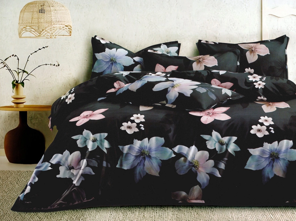 Pościel w kwiaty 200 x 220 4cz Satynowa Dalwin 1009