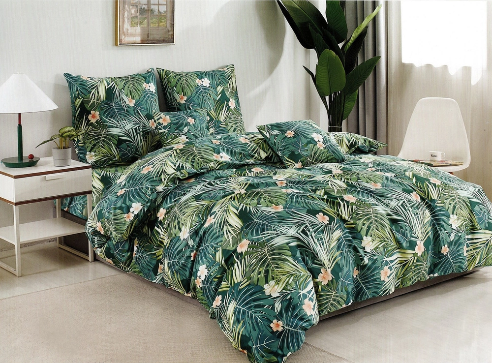 Pościel w tropikalne wzory 200 x 220 3cz Satyna Bawełniana nr A1742