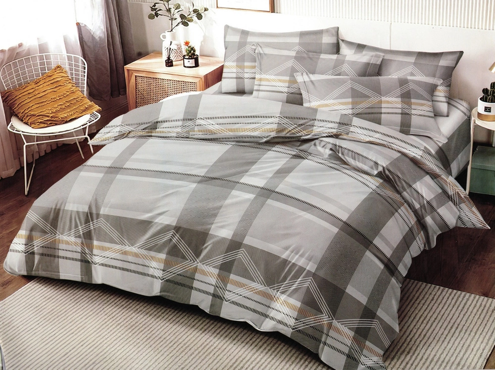 • Pościel Dalwin 1029 w rozmiarze 160x200 cm z satyny bawełnianej. Zestaw 3 części (poszwa 160x200 cm, poszewki 70x80 cm) w odcieniach szarości i srebrnego z zamkiem błyskawicznym. Elegancka, komfortowa, idealna do nowoczesnych sypialni.